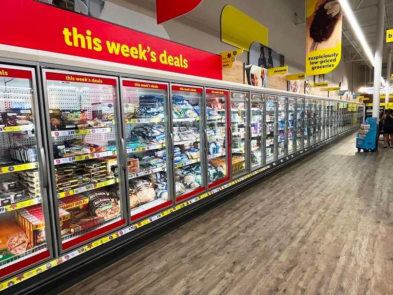 | Bargain section in middle aisle offers random, non-grocery items along with some great deals | Meats and seafood are self-service and pre-packaged |