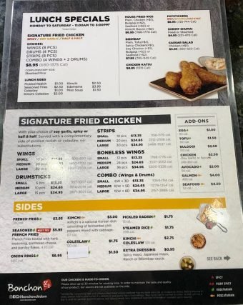 Bonchon-MenuPrices2 November 4, 2021 by Ron Wen About Ron Wen UNC Chapel Hill graduate, B2B marketer and blogger based out of Raleigh, NC Previous Post:Bonchon Fried Chicken in Chapel Hill for Korean Fried Chicken and More