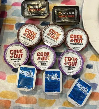 | Chicken Nuggets (5) – Cook Out Sauce, BBQ, Honey Mustard, Polynesian, Ranch, Buffalo | 240 calories | 1.99 |