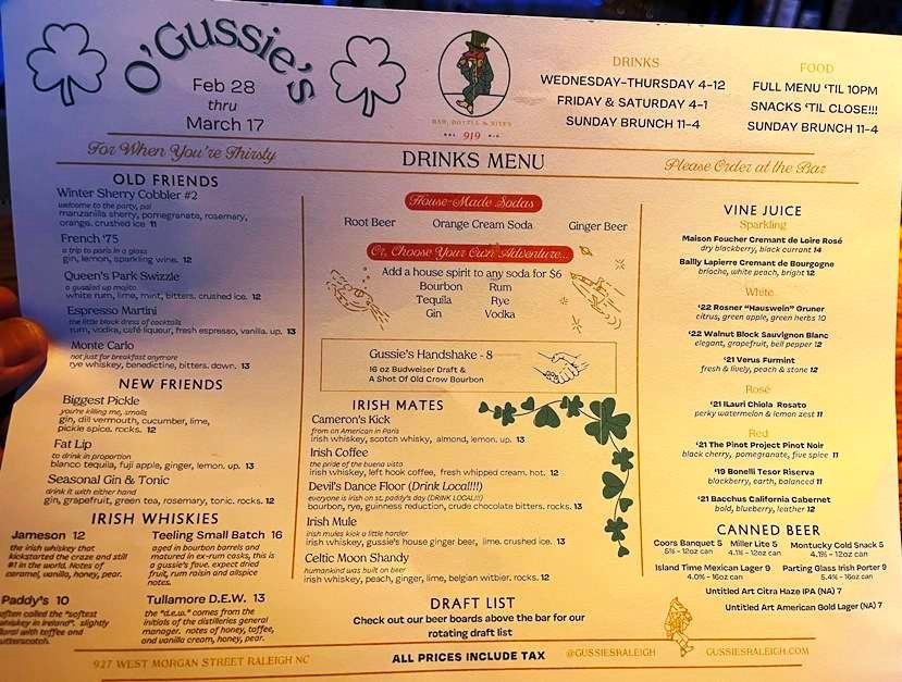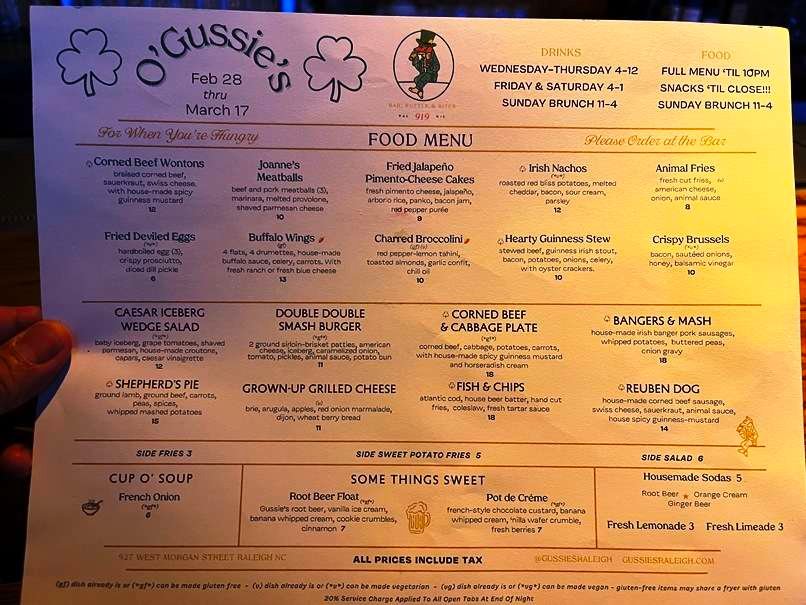 While the Hibernian still stands in Glenwood South, other Irish bar favorites like Tir Na Nog (now Brewery Bhavana) and Napper Tandy’s (now Clouds Brewing) have closed down as Raleigh has grown by leaps and bounds. And it just feels like Gussie’s might be a good successor to those classic Irish pubs that I loved. A place to grab a beer and a bite, engage in some conversation at the bar and head back home without breaking the bank. A comfortable spot for the neighborhood or visitors who appreciate this type of stand-alone bar that’s not part of a sterile, newly built work-live development. So congrats to Gussie’s on bringing some old school back with some new school vibes! Looking forward to see what you do next.