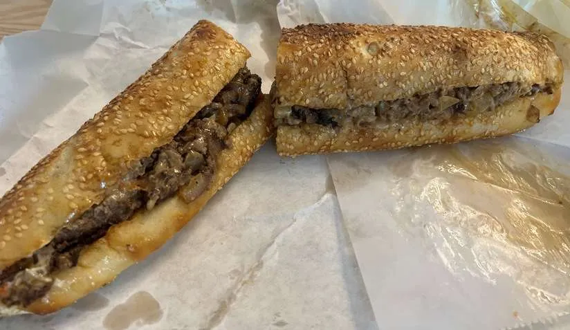 Sandwiches are wrapped up carefully in white butcher paper, grab some chips and you’re ready to eat! I’ll review the sandwiches in order of deliciousness, at least in my opinion! My #1 recommendation at Ideal’s is their Philly Roast Pork hoagie. A classic taste combination of slow-roasted pork loin, broccoli di rabe, and provolone. This Italian roast pork sandwich is just perfect and their seeded hoagie roll holds up well to the moisture in the pork. The roll is beautifully baked with some exterior chew and a tender interior. The broccoli di rabe adds a hint of bitter along with the pungent cheese to counteract the richness of the pork. The full hoagies at Ideal’s are about 12″ long and it’s a narrower sandwich but well packed for a filling meal.