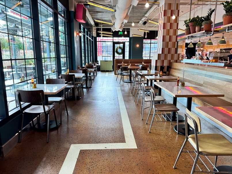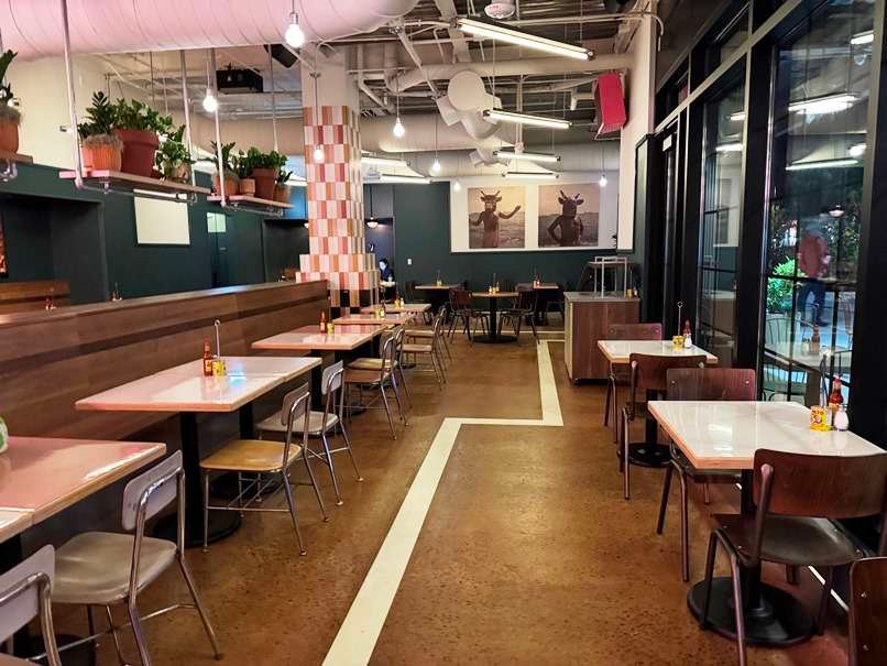 Little Rey has a premium spot at Raleigh Iron Works sitting at the main entrance off of Whitaker Mill Road. Two parking lots on this end of the development means there’s usually a short walk to dine here. Large lattice windows sit on the outside giving you a clear view of the patio and businesses across the way. Pull open the heavy door and you’ll be right in front of the quick-casual counter order area. The large open dining room offers a mix of natural colors and textures primarily in browns and deep greens (along with pops of pink), reminiscent of the Southwest. The room columns are covered in ceramic tile and plants sit perched on tops of suspending shelves. The order counter is highlighted and lit up with a long stretch of colored neon and bare fluorescent lights are hung off the ceiling. It all feels nicely put together and quirky, they have definitely spent some money on decor at Little Rey!