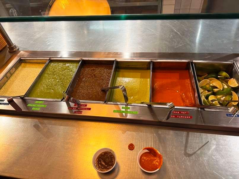 I’ve had a chance to visit Little Rey several times (once comped, twice paid out of pocket) and the menu is pretty tight and focused. A small list of appetizers (chips, quacamole, queso fries, chicken wings) along with roast chicken, salads, quesadillas, and tacos, perfect for indecisive people. Note that Little Rey opens early and also offers a breakfast menu for early birds. After you order, you’ll get a table sign stand with a card featuring a famous personality, grab some utensils/napkins and for sure, don’t miss the salsa and hot sauce bar! Love Little Rey’s sauce bar, they are fresh, vibrant and spicy, perfect for chip dipping or drizzled on top of your tacos.
