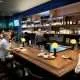 If you’re not familiar with Fenton in Cary, I’d describe it as a work-live shopping district similar to North Hills but maybe even a step up in terms of luxury. M Test Kitchen sits front and center of the main Fenton shopping area, sharing a common entrance area and bathrooms with M Sushi. The space is long and narrow with a graphite-gray-silver color scheme from the polished concrete floors, seating, counters, and lighting. It all feels a bit austere and modern, the long bar on one side frames most of the dining room with an open kitchen at the end. Note that there is plenty of patio seating outside facing the main Fenton entranceway for fair-weather dining.