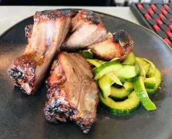The black cod in green curry sauce features a succulent piece of whitefish with crispy seared skin in a light, spicy broth. It plays with the dish in a fun way with the firm-fleshed fish in more of a Thai flavor combo. And the char siu ribs with cucumber features some grilled baby back rib pieces and slightly spicy cucumber slices. And don’t miss the classic grilled NY Strip with broccoli which offers a very upscale take on a Chinese take-out classic.