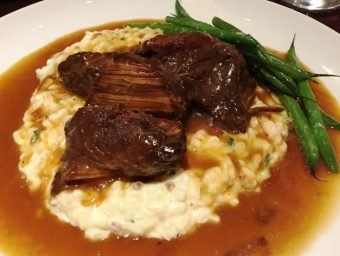 Next are our mains and my BEAUTIFUL looking short rib dish. I have a lovely portion of beef sitting atop some very creamy risotto. Sitting in a light pool of broth and decorated with some green beans, it makes for some great eye candy. My first bite into the dish and I get an eye-roll; the beef is fork-tender and perfectly flavored. Paired up with the toothsome risotto we’re talking about a hearty, down-home dish but raised up to a special level for the tastebuds.