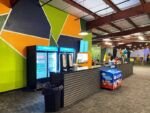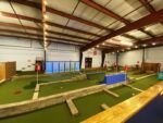 Head on down S. Saunders drive to 401 south and you’ll find ParTee Shack in a new and low-slung building on the right. Through the double-doors you’ll find the check-in counter to your right, a private room to your left along with a cool golf mural. Right in front you’ll see three mini-golf courses (Yellow, Blue, Red) in increasing difficulty levels! Some cool features and obstacles you’ll find on the course include a school bus, bowling pins and a giant green Hulk! Head on over to the far right side and you’ll find a lounge area, small kitchen for beer and snacks, pool table and a future spot for virtual golf simulators.