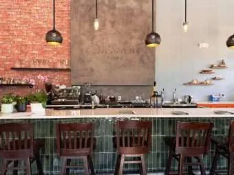 Now if you’re ready to take on the menu, you’ll find some wrinkles but it’s totally worth the culinary exploration! Shinmai Kumo’s menu is thankfully pretty short featuring apps, salads, soups, pastas, and flatbreads. Shinmai Kumo also offers some non-alcoholic drinks like spritzes, lattes and matcha, no soft drinks available here, a very Japanese touch. You’ll notice that there are some twists given the Itameshi theme. You’ll find pastas like sukiyaki pasta along with unagi and chicken curry flatbreads, interesting!
