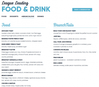 Brunch menu