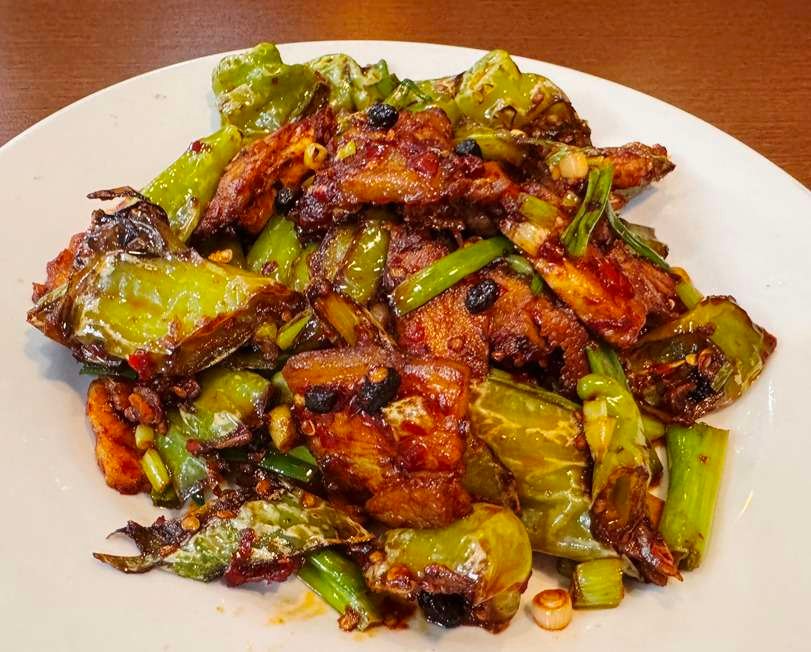 For veggies and a bit of green balance, the traditional dry-fried string beans are excellent. Fried until they get a bit wrinkly, the beans are full of flavor and bits of flavorful pork. The pea shoot tips with garlic are another great choice. Medium-weight greens in a flavorful but light, white sauce. Mapo tofu is another traditional side dish but I have yet to try it, sometime soon. And believe it or not, the rice even is pretty super here. My friends have commented they must use magic water to prepare it but I have no formal proof!