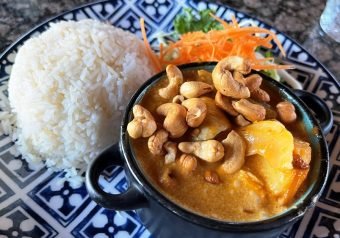 For lunch entrees during my visits, I’ve tried both the chicken pad thai and massaman curry (light coconut curry) with chicken. The chicken pad thai was lovingly presented in a beautiful ceramic bowl and served with plenty of bean sprouts and crushed peanuts. Full of flavor and definitely tasty, it was a good portion size for lunch. And Thai Station’s massaman curry was perfectly spiced and gingery, a handful of cashew nuts sprinkled on top. Loved this version served with white rice, I wolfed it all down without much guilt.