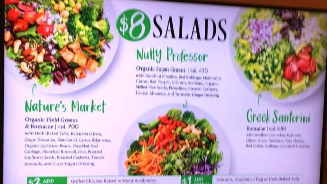 Now before or after you’re done shopping, you may want to check out Wegmans prepared food areas. First, there’s the hot and cold bars with about 100 items to choose from that will change seasonally beyond some regular favorites. You can purchase your food by the pound here for eating at home. The choices range from classic American eats to Asian along with a healthier salad bar area where you can mix and match your proteins.
