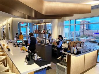 When it comes to bars and lounges, I’m usually a fan of independent, slightly grungy type places. Maybe not quite divey but a step or two up. But as the Triangle has grown and evolved, we’ve seen a move toward hotel bars over the last few years. In my experience, they tend to be a bit sterile and over-priced but I’m always open to trying a new one out. Late last year, I did get an invite to the Willard Rooftop Lounge and was impressed with the space and view. And I finally had a reason to go back when I had friends visiting and had an excuse to revisit. Here’s what to expect if you decide to check out the Willard Rooftop Bar and Lounge in Glenwood South!