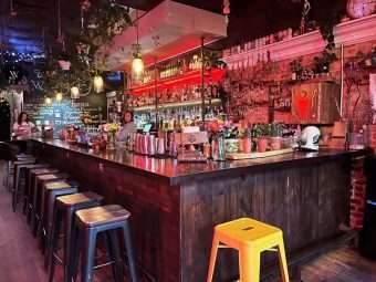 I’ve been here four or five times (at least) and they shake up a quality cocktail here. Fresh juices and herbs-aromatics are used often to bring an unusual flavor profile to the drinks here. And while I’m sure they can do your classic cocktails, I usually explore a bit with their seasonal offerings. And once you get your cocktail, you can hang out at the bar, grab a comfy seat in the lounge area or take it outside on their sidewalk patio for some fresh air. Just beware, the fluorescent signs at Krispy Kreme may pull you in! And I have to confess, the cocktails at William & Co go pretty well with hot-glazed donuts… 🙂