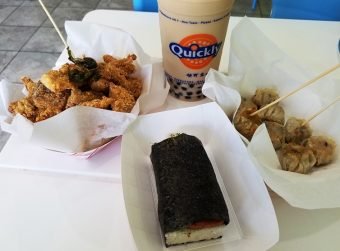 In subsequent visits to Quickly, I decided to explore their food menu a bit. Described as Asian street food, the choices range from popcorn chicken to rice dishes and more with prices from $3 to $9. I’ve tried the popcorn chicken which is great! A pile of perfectly browned chicken chunks with a crunchy coating. It all looks familiar, I’m pretty sure Quickly uses water chestnut flour which gives the popcorn chicken a distinctly bumpy, brown surface. And it’s all dark meat which makes for a tasty little snack along with a boba tea, good stuff.